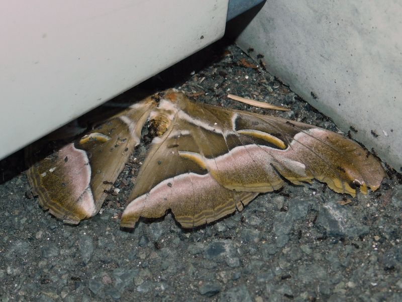-- ゴミ箱の下に、シンジュサンの遺骸。