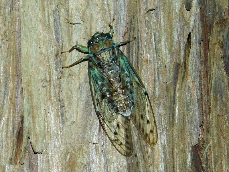 -- セミの♂は飛び立つとき声を出す。これはヒグラシ。