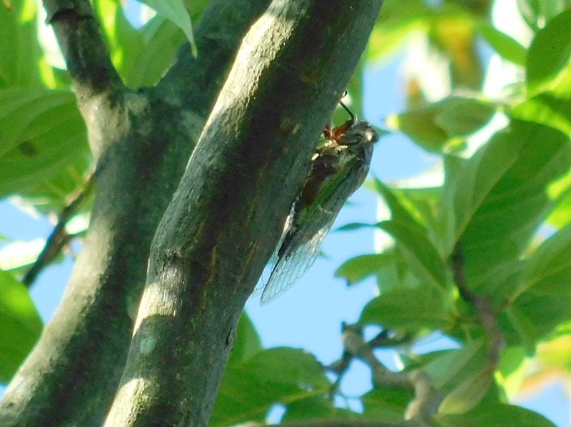-- 腹を振って鳴くクマゼミ:レンズの射程圏外。