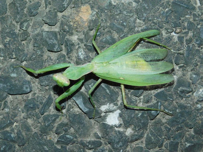 -- 踏まれたらしい、ハラビロカマキリ:まだ生きている。