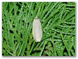 2021年10月3日(日) ◆秋分の日から10日目だが、まだ日中の残暑が厳しい。10月の最高気温として、観測史上最高値を更新した地もあるという。だが早朝の散策だけは、清々しい空気を存分に楽しめる。◆今朝も美しい星を見ながら探索を始めた。灯火の下でも暗い場所では、しっかり見ないと小さな虫は見落とすことがある。被写体が見づらくても、カメラのオートフォーカスが働いてくれるのはありがたい。◆夜露なのか、微小な水の粒で濡れた虫の体は、忍者のようにフラッシュ光を反射する。そのために同定が難しいもの、全く見当もつかないものなどがあり、これらは不採用にした。◆今回も谷道での収穫は乏しかった。前夜の雨で湿っていたせいか、擬木柵にカタツムリばかりがたくさん見られた。草むらから小さな蛾類が飛び立つが、葉の裏側に止まるので、暗がりでの撮影はまず無理。明るくなってから、キノコや野草の花にカメラを向けた。