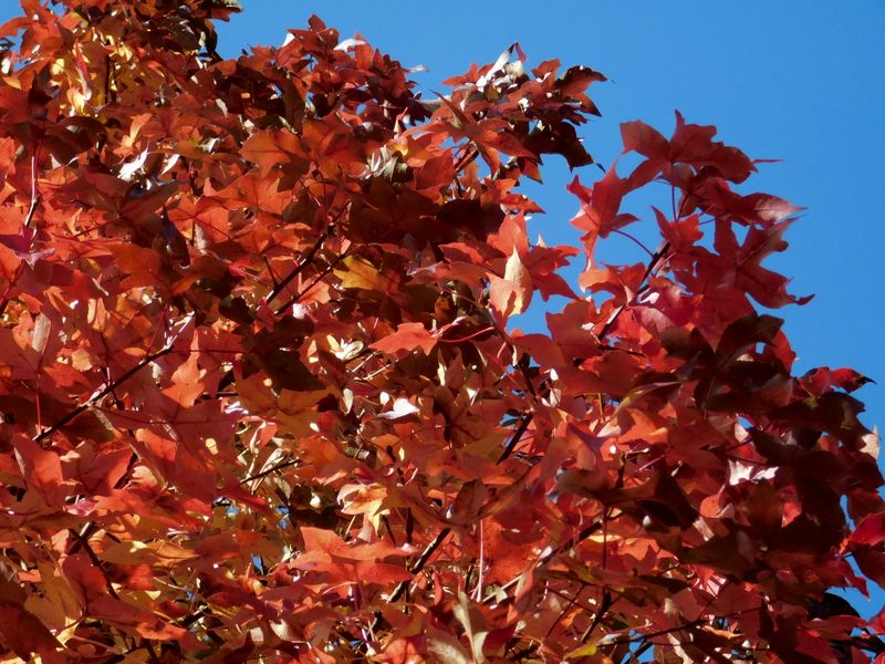 -- 青空に映える、モミジバフウ。