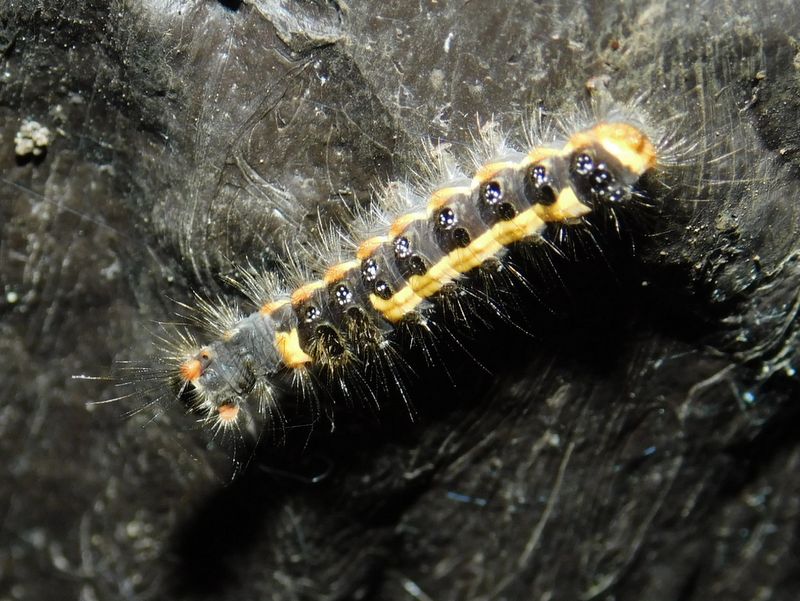 -- ゴマフリドクガの幼虫。