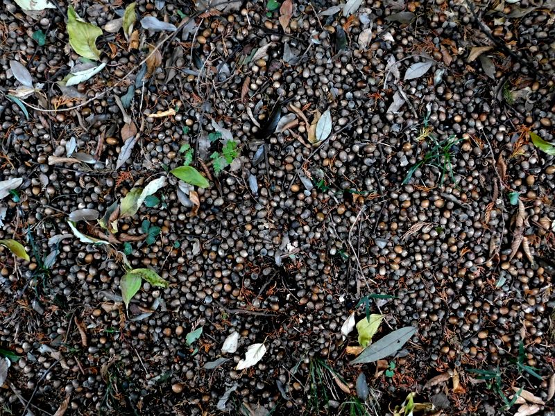 -- 林床にドングリがびっしり。