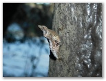 2022年1月9日(日) 概要を表示 畳む ◆きょうも穏やかで、日差しの暖かい日になった。家にいるのがもったいない。森の小さな虫たちも、こんな日には動き出ているかも知れない。◆動いていた虫は少なかった。カメムシの仲間と、ごく小さな若齢の尺取虫を見たのみ。3日前に降った雪が、まだあちこちに残っていた。◆フユシャクは5種を見た。残念ながら、♀はゼロ。時間帯を変えて探してみよう。◆谷道がぬかるんでいて、靴に粘着性の土がたくさん着いた。短い小枝を使って、この泥を落とす。ベンチや柱などに泥靴をこすりつけるのはNG。