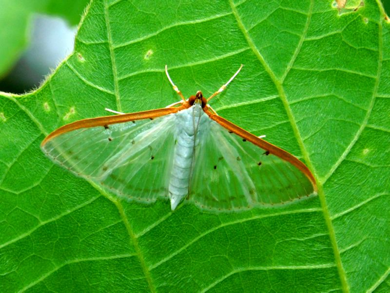 -- 葉裏に、マエアカスカシノメイガ@霧が丘 11:54