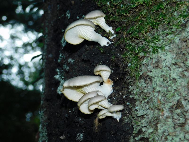 -- 活きたシラカシに白いヒラタケ?