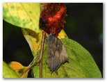2023年11月9日(木) ◆きょうは撮影はせず、森の中の散歩だけのつもりで家を出た。選んだのは、三保市民の森。針葉樹とシダがメインの、やや暗い森林の中に「プロムナード(散策路)」と呼ばれる山道がある。◆そのプロムナードはあまり日が差し込まず、花や虫を見ることはまれだ。夏場なら、蚊やメマトイに悩まされるが、今の季節は快適に歩ける。広大な森でないことが惜しまれるが、贅沢は言えない。◆三保平の木々は黄色やオレンジに色づき始めていた。今年はまだ夏日が終わったばかり。来週から一気に秋の色が濃くなるかもしれない。◆出遭った虫は、ごく普通の常連さんばかり。その中に一つだけ、ゴミを体にまとって歩く虫がいた。正体はまだ判らない。◆クロコノマチョウが柿の実の汁を好むことは知っていたが、きょうもその様子を見ることができた。この蝶は成虫で越冬する。柿の実以外には、何から養分を摂るのだろう?