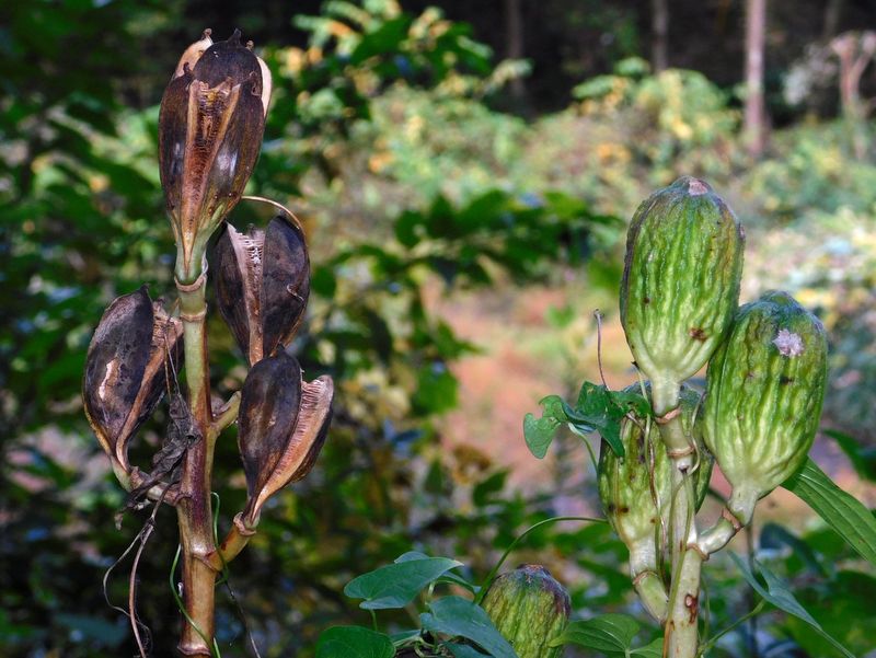 -- 隣でもこんなに違う、ウバユリの果実。