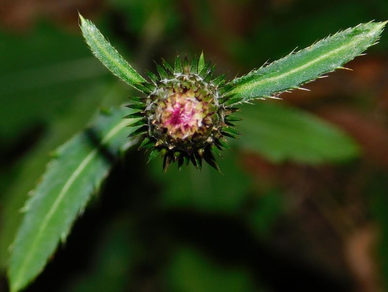 -- タムラソウのつぼみを真上から。
