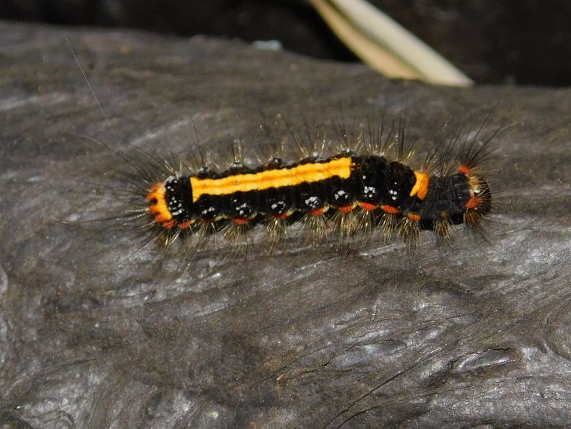-- ゴマフリドクガの幼虫。