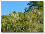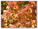 飯能市 ◆きょうも秋晴れ、スーパー快晴になった。一年前から計画していた飯能市美杉台の並木道にて、モミジバフウの紅葉狩りを実行に移す。モミジバフウの葉は、緑色~黄色~朱色~赤~赤紫まであって、近くで見ても、遠くで見ても、美しかった。落ち葉もたくさんあり、この並木が全部真っ赤になるのも遠くなさそうだ。◆その足で、あさひ山展望公園に立ち寄り、丹沢~奥多摩~武甲山までの展望を満喫した。そして、もしかしたらカモシカと出遭えるかもしれない柏木山に歩を進めた。◆赤根が峠の先で、蝶や山野草の多い道に誘われ、大道草を食う。カモシカ新道では、人にもカモシカにも出会わなかったが、好展望の山頂は多くのハイカーで賑わっていた。登頂者を出迎える種々の木製オブジェも見て楽しい。山頂の鐘は全部打ち鳴らした。◆下山は山野草を訪ねつつ茜台自然公園へ。そして入間川のドレミファ橋から吾妻峡をのんびり漫歩。子連れの家族が多く、石投げ(水切り)遊びなどして楽しそう。最後に、バーべキュー客で賑わう飯能河原を通り抜けて、東飯能駅に戻った。 ◎ 東飯能駅西口 7:22 --- 7:43 矢久橋 7:46 --- 7:59 美杉台小学校前 7:59 --- 8:23 美杉台中学校前 8:23 --- 8:33 あさひ山展望公園 8:51 --- 9:08 龍崖山公園 9:20 --- 9:46 赤根が峠 9:49 ---(大道草)--- 11:08 柏木山 11:51 --- 12:33 茜台自然公園 12:35 --- 12:57 ドレミファ橋 13:00 ---<吾妻峡>--- 13:46 飯能河原 13:51 --- 14:13 東飯能駅西口 全6時間51分 単独 ❀❀❀ ❢