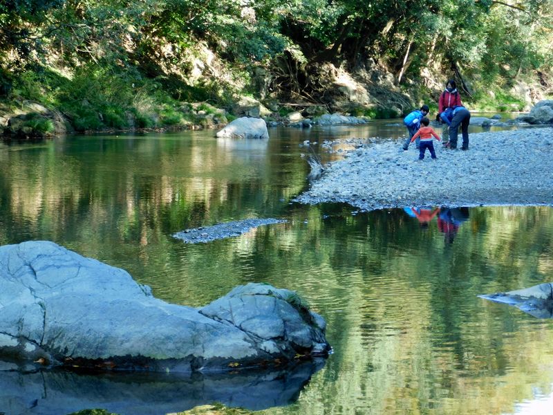 -- 石投げ(水切り)遊びは定番のようだ。