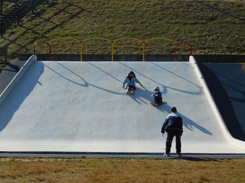 -- 龍崖山公園の滑り台。段ボールで尻セードができる。