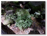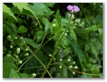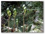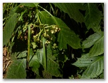 表参道は御嶽神社へと続いていますが、まず先に、ケーブル御岳山駅前の御岳平に行きました。御岳平は優れた展望地で、近場の青梅丘陵、遠く多摩丘陵、さらに遠方の都心方面までを広大に望めます。そしてレンゲショウマ群生地へは、わずか3分の距離。私は7年ぶり、2度目の訪問です。ロープで仕切られた見学路からざっと見て、地味に咲いているな、と感じました。今年は花つきが少なめだったのか、あるいは私が来るのが遅すぎたのか、花はまばらです。