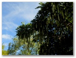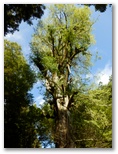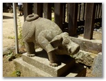 表参道は「滝本の大杉」と呼ばれる、青梅市指定天然記念物の大杉から始まります。さすがに杉並木に入ると、幾分涼しさを感じるようになりました。巨大杉並木の舗道をテクテクと登って行きます。この道は指定車両が通過することがあるので、注意するようにと書かれていますが、日曜日の朝とあって、出合った車は1台だけでした。と、背後からチリンチリンと澄んだ鈴の音。はるか下の方から聞こえたかと思うと、若い小柄な女性がたちまち私を追い抜いて行きました。