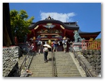 季節の花が色々と咲いていました。ママコノシリヌグイ、ベニバナボロギク、ハキダメギクなど、気の毒な名を付けられた花たちが、そんなことも知らず、平然と咲いています。言ってやりましょう「君らは清々しい!」これらの花は、近くで見れば見るほど、魔法のように固有の美が見えてきます。さて、滝本駅前にやって来ると、赤いケーブル車両が静かに降りて来ました。これはおそらく試運転で、営業運転は7時30分からです。私は真っ直ぐ表参道に進みました。