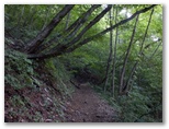 休みながら、肩を回したり、肩こりをほぐす指圧をしてみたのですが、症状は改善しません。この状態でアップダウンの大きなサルギ尾根を歩くのは厳しいと判断し、やむなく進路を変更することにしました。最も容易に下山できるのは、ケーブルカーに乗ることです。ここから御岳平へは、ほぼ平坦な道。バスの時間を気にする必要もなく、ゆっくり、ゆっくり歩いて行きました。それにしても、御岳山にケーブルカーがあって、本当によかった!