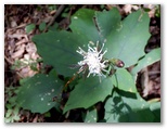 すでにかなりの人々が来ていました。皆さん、鑑賞というよりも、撮影に夢中です。そして例外なく大口径レンズを用意し、背景のきれいにボケた、レンゲショウマの美の際立つショットを狙っているようです。さもなければカメラを手に、写り映えのする花を物色中。レンゲショウマの宿命なのか、完璧にシミ・アザのない花は、めったにありません。さらに、光線、構図、背景まで求めるとなると大変でしょう。私もせっかく来たので、コンデジで幾つか撮りました。