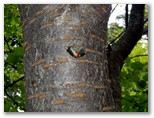 表参道に「丁目石」はありませんが、かつて名のあった地点には、その名の標柱と謂れの書かれた説明板が立っています。「ろくろっ首」「うまたてば」「じゅうやっくぼ」「あんまがえし」など、全部で9箇所か10箇所ほどあって、参道歩きの変化の乏しさを補っています。道半ばの「なかみせ」を過ぎたあたりから、エゾゼミの声が聞こえ始めました。登って行くほどに、2重唱、3重唱 .... と多重唱になって行きます。逆に足どりはどんどん軽やかになって行きました。