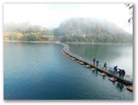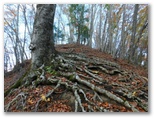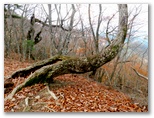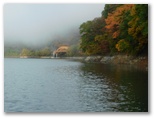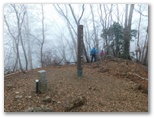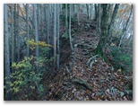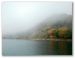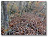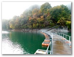 2018年11月10日(土) ◆今週はじめ風邪をひき、丸2日間寝こんだ。奥多摩の紅葉は見ごろを迎えたというのに、ボヤボヤしていると、終わってしまう。◆そこで、リハビリ山行として、麦山の浮橋(通称ドラム缶橋)から三頭山に登ることを思い着いた。鷹ノ巣山も候補に考えていたのだが、病み上がりなので、もう少し難易度を下げなければならない。そうしたつもりだった。◆朝の奥多摩行き電車は、4両とも空席がないほど登山客で賑わっていた。終点でドアが開くと、一斉にバス乗り場へと殺到。東日原行き乗り場にはたちまち長い列ができたが、小菅の湯行き乗り場には少し余裕があった。バスは1台増発され、留浦行きの臨時便となった。◆小河内神社バス停で下車。奥多摩湖は霧が立ち込め、対岸が見えるような見えないような、微妙な按配。この濃霧では紅葉狩りどころではない。「麦山の浮橋」を画像検索しても、こんな風景は出てこない。誉め言葉を使えば、神秘的な風景だ。これは得をしたことにしよう。 ◆この朝霧は、冷たい湖水の上に、暖かい空気が流れ込んで発生したのだろう。霧の上には青空が見える。山上の風景は期待できるかも知れない。◆ところが、三頭山に至るヌカザス尾根は、終始展望に恵まれないルートだった。しかも急登と急下降の繰り返しで、リハビリ山行としては、キツ過ぎた。それでも所々でふいに現れる小規模の紅葉は、小規模であるが故に飽きることがなかった。◆残念ながら山頂に重苦しい色の雲が発生した。入小沢ノ峰あたりから上は、すっかり雲に包まれ、視界不良。これ以後、下山して数馬に至るまで100%の曇天が続いた。◆帰りのバスもまた混雑したが、数馬では2台のバスが待っていて、乗り換え便の客は全員が座れた。しかし武蔵五日市駅で接続した「ホリデー快速あきがわ」に乗って以降、立ちっぱなしとなり、疲れて帰宅した。行楽シーズンの週末、人気の山に行くのは考え物だ。計画が安直過ぎた。 ◎ 奥多摩駅 7:25 == 7:52 小河内神社バス停 7:53 --- 8:38 三頭山登山口 8:44 --- 9:51 イヨ山 9:52 --- 10:47 ヌカザス山 10:54 --- 11:26 入小沢ノ峰 11:27 --- 11:46 鶴峠分岐 11:50 --- 12:14 三頭山西峰 12:33 --- 12:39 中央峰 12:39 --- 12:41 東峰 12:41 --- 13:10 見晴らし小屋 13:25 --- 13:53 鞘口峠 13:53 --- 14:03 森林館(登山終了)14:16 --- 14:22 都民の森バス停 14:37 == 14:47 数馬 14:52 == 15:50 武蔵五日市駅 15:55 全6時間10分 単独 ❀❀❀ ❢❢❢