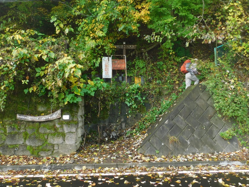 -- 三頭山登山口。山頂まで4.5km。8:44