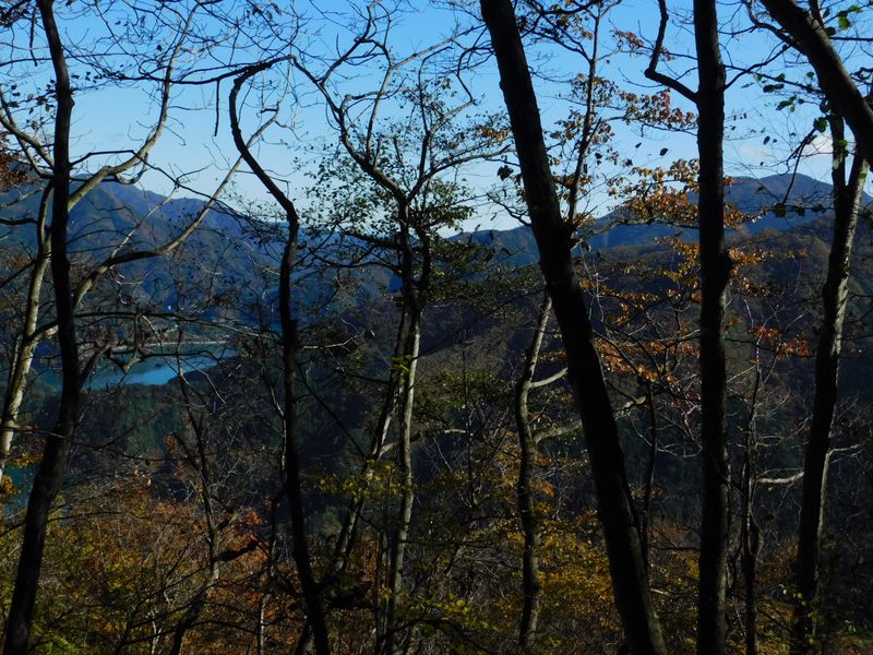 -- 苦しいが、御前山(右)と奥多摩湖を望む。9:50