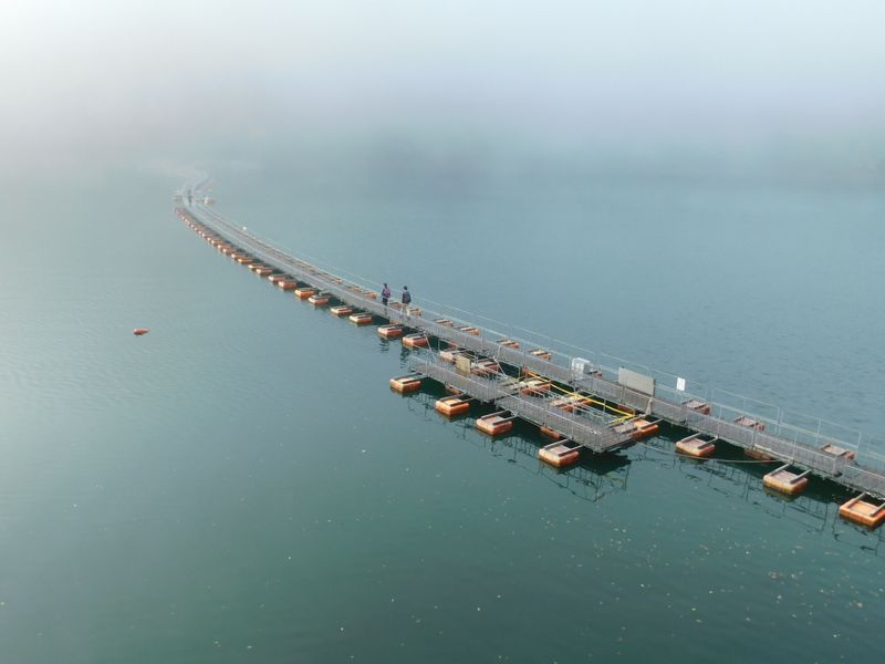 -- もう少し低い位置から浮橋を俯瞰する。7:56