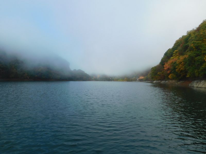 -- 浮橋より、奥多摩湖上流を望む。7:58