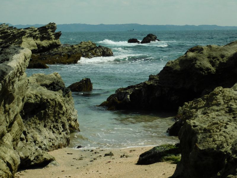 -- 砂浜で、きれいな貝殻や色ガラスの破片を拾う。11:48