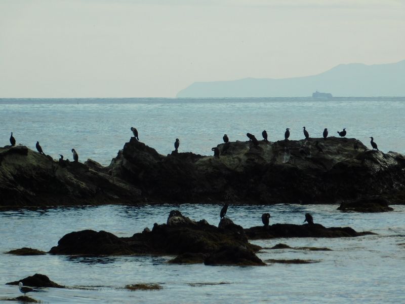 -- ウミウとカモメ。右は伊豆半島。14:32