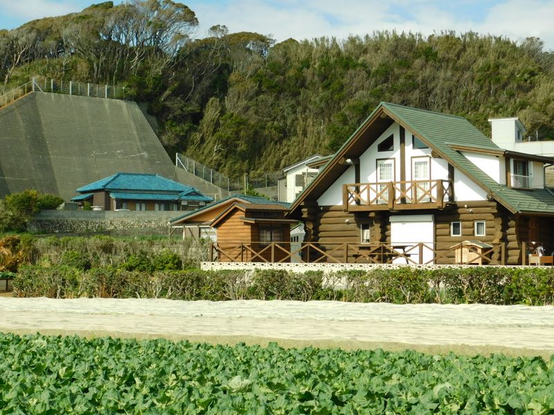 -- 毘沙門湾に、青瓦の家とログハウス。14:42