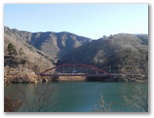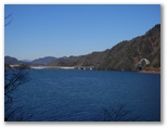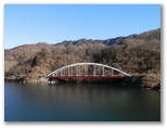 10号橋は高い橋脚を持つ、本格的な橋です。宮ヶ瀬湖の湛水前に造ったのでしょう。竣工後、車両がまだ通ったことのない橋。この橋の上で昼を食べ、お茶を飲むのを楽しみにして来ました。宮ヶ瀬湖の対岸には、仏果山登山口が見えます。宮ヶ瀬方面から神奈中バスがやって来て、止まりました。乗客の誰かがこちらを見ているかもしれません。私が見えるでしょうか?見えても、ただの橋に、人がいるだけだと思われるかもしれませんが。