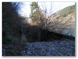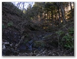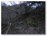 10号橋を渡ると、村道は一旦終わりです。「終点」と書かれた小さな杭の写真をWEBで見たことがありますが、探してもここでは見つかりませんでした。誰かが記念に持ち帰ったのかもしれません。橋の先は尾根で遮られていますが、この尾根を下ってくれば、もっと楽に来れたのではないかと思います。そのためには、430m峰の北尾根を、途中からでも鹿柵の右側沿いに下らねばなりません。もしまた来ることがあれば、そうしようと思います。