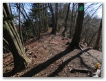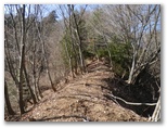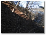 さて、どの支尾根を登って宮ヶ瀬尾根に乗ろうかと思案しました。下りてきた支尾根はもうご免だし、410m峰北尾根も鹿柵が長くて気が進みません。広場に面する入り江の奥の小沢に行ってみると、その左岸の尾根は日当たりがよく、歩けば気持ちがよさそうに思えました。もちろん、大した根拠はありません。小沢から出てきたミソサザイに導かれて、登りやすそうな取り付きを見つけ、適当に登ってその左岸尾根に立ちました。