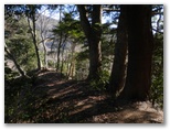実際、とても雰囲気の好い尾根でした。木に赤テープも見られます。9分ほど登ると、尾根を横断する作業道があり、右は通せんぼでしたが、左は何かありそうな感じがしたので入ってみました。眺めの良い場所がありましたが、しばらく進むと先ほどミソサザイが飛び出してきた沢に下って行きます。引き返して正直に上を目指しました。すると程なく見覚えのある作業道に出て、一息で昨年3月に歩いた宮ヶ瀬尾根に立つことができました。