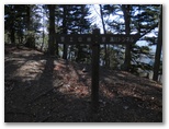 525m峰に立つ標識は、普通の道標と同じ姿ですが、左右の腕木は、土山峠と清川トンネルの「方角」を指しています。ある地点から、とりあえずどちらに向かうのが正しい道であるかを教えてくれるのが普通の道標で、指導標とも言いますが、それとは異なります。都会の公園に、ニューヨーク、モスクワ、ヨハネスブルクなどの方角を指す標識を立てるようなものですが、525m峰の標識は未来の村道への思い入れが発露したモニュメントなのかも知れません。