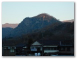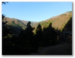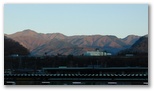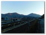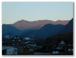 猿橋駅で電車を降りると、急いで改札を出て、南口に出ました。モルゲンロートの山々を眺めるためです。まず東の百蔵山と扇山。次に西の滝子山~ハマイバ丸。眼前の岩殿山。そして雁ヶ腹摺山と楢ノ木尾根。きょう宮地山を目指す動機の一つは、楢ノ木尾根を一望したいと思ったからですが、ここでそれが半分実現しました。山並みを照らす朝日が陰影を造り、程よい立体感を生んでいます。大峰~水無山~尾越山が欠けましたが、いつかカバーする機会があるでしょう。
