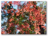 さて、ゆっくりしているヒマはありません。小走りに北口に行くと、奈良子行きのバスが待っていました。2分後の発車です。6時59分発という微妙な設定は、狭い道路でのすれ違いを調整するためでしょうか。中学生が2人乗りましたが、きっと朝練のためでしょう。ガラガラで走るバスに乗っていると、もったいないとも思いますが、登山者にとってはありがたいものです。バスが林沢戸入口に近づくと、たわわに実った柿の木が数本、色鮮やかに並び立っていました。