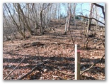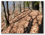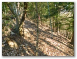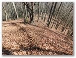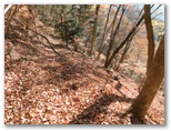 楽な道は5分ほどで終わりました。緩急のある尾根を登って行きます。孟宗竹林が進出していたり、共同受信用のUHF・VHFアンテナの遺物があったりして、まだ里山の延長のような趣がありましたが、それも用沢分岐まで。715m地点を過ぎると、山本番の雰囲気が濃くなりました。針葉樹林も一部ありますが、ほとんどは落葉樹林。前者は暗いけれども落ち葉が足に優しく、後者は明るいけれども足を滑らせないよう気を使います。この季節、どの山も同様でしょう。