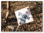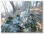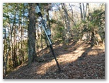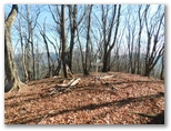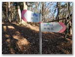 大岱山への往復が完了。以後はひたすら南下します。始めにやや急なプラ階段を下りますが、その先は美尾根の連続でした。気持ちよく、スタコラ、スタコラ歩き、あっさりとセーメーバンに到着。きょう最後の主目的地です。やはり展望は利きません。もう急ぐこともないので、ゆっくりと腰を下ろし、まだ熱い紅茶とお菓子でくつろぎました。そしてストレッチを念入りに行っていると、都合よく山頂に置かれていた頑丈な杖を発見。これを手に、下山の途に就きました。
