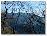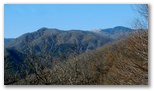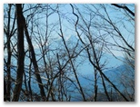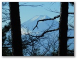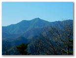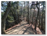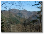 樹木が多いので、なかなか展望に恵まれません。右手の樹木が薄くなった時、辛うじて三ツ森と権現山稜を望めました。ふと左手を見ると、大きな富士山に気が付きました。感激します! ただ梢越しで撮影するには苦しく、結局セーメーバンを過ぎるまで富士山をスッキリ望める場所はありませんでした。冬場は梢越しの眺望、夏場は眺望のない宮地山。魅力と言えば、ゆったりと開放感のある美尾根ですが、そこに至る前に、道形のない急登をこなさなければなりません。