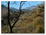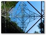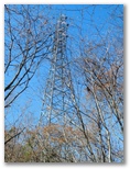 さらに下って10号鉄塔付近では、時計回りに、権現山稜、扇山と百蔵山の重なり、秋山山稜、丹沢主脈の焼山~蛭ヶ岳、そして道志山塊と御正体山などを望めます。一般に送電線ルートは、伐採による好展望があります。雄大な展望は、何と言っても登山の楽しみの中で大きな一つ。その空に架かる送電線が目障りだと思われる方もいますが、私自身は送電線の描く曲線が嫌いではありません。むしろ「猫バス」の通り道のような想像を加えて見てしまいます。
