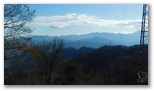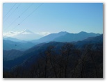 この道を歩くときの楽しみは、深城線11号鉄塔付近の伐採地で望む、広大なパノラマです。その主役はもちろん富士山。ここに来て初めて何の障碍物もなく、その全姿を望めます。もっと美しい姿を求めるなら、他の富士山景勝地と同様、空気の澄んだ季節の、逆光でない時間帯が確実です。富士山の前衛には三ツ峠山をはじめ、鶴ヶ鳥屋山、本社ヶ丸。右には滝子山から野脇ノ峰、白谷ノ丸、黒岳まで。ここに初めて来た昨年1月には、ゆっくりと山座同定を楽しみました。