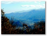 馬の置物はブロンズ製のようです。一番大きな馬が横に倒れていたので、起こしてやると、気のせいか、馬がうれしそうに見えました。これより明るくなだらかな美尾根を、西に進みます。もはや気分は楽園の信徒。俄かに軽くなった足がどんどん前に出ます。相変わらず梢越しですが、南山麓に葛野川が光り、北面に泣坂ノ頭、大峰、水無山などを望めました。富士山も見えるだけで元気をくれます。こうして一気に宮地山頂に到着。薬師堂から正味2時間でした。