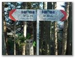 サクラ沢峠にやって来ました。きょうの縦走はここまで。まだ余力が十分にありますが、明日も使う足を労わって、金山に下ります。その道は、心配したザレや斜面との同化もなく、狭いながらもしっかりした道でした。エスケープルートとしても使えそうです。登山道の終点には「←セイメイバン」と書かれた道標がありました。セーメーバンからお伴をしてくれた杖をここに置きます。ここで先週と同様のミスを犯し、道を間違えましたが、すぐに気が付いて戻りました。