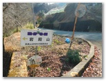 降りたバスを見送り、宝鏡寺薬師堂に向かいます。途中で、大きな熟柿を一つもらいました。ぶよぶよした冷たい柿。潰さないよう、そっと上着のポケットに入れました。体が暖まったらいただきます。薬師堂で手短に安全祈願をすると、その裏手に回って、林道わきのコンクリート階段に行きました。目印は最下段の「宮地山入口」と書かれた赤い小さな標識。これより高度差約120mは、踏み跡の薄い急登です。本コース最初のプチ難関、さっそく取り付きました。