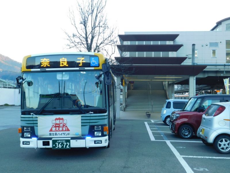-- 猿橋駅北口。6時59分発の奈良子行き。6:57