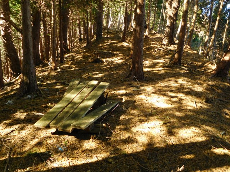 -- 旧登山道の朽ちたベンチ。11:14
