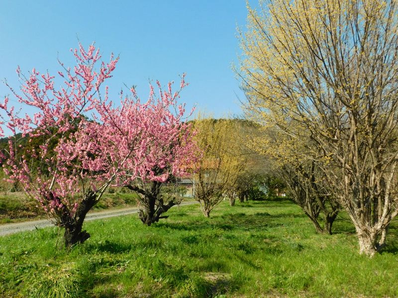 -- 黄色い花はサンシュユ。14:10
